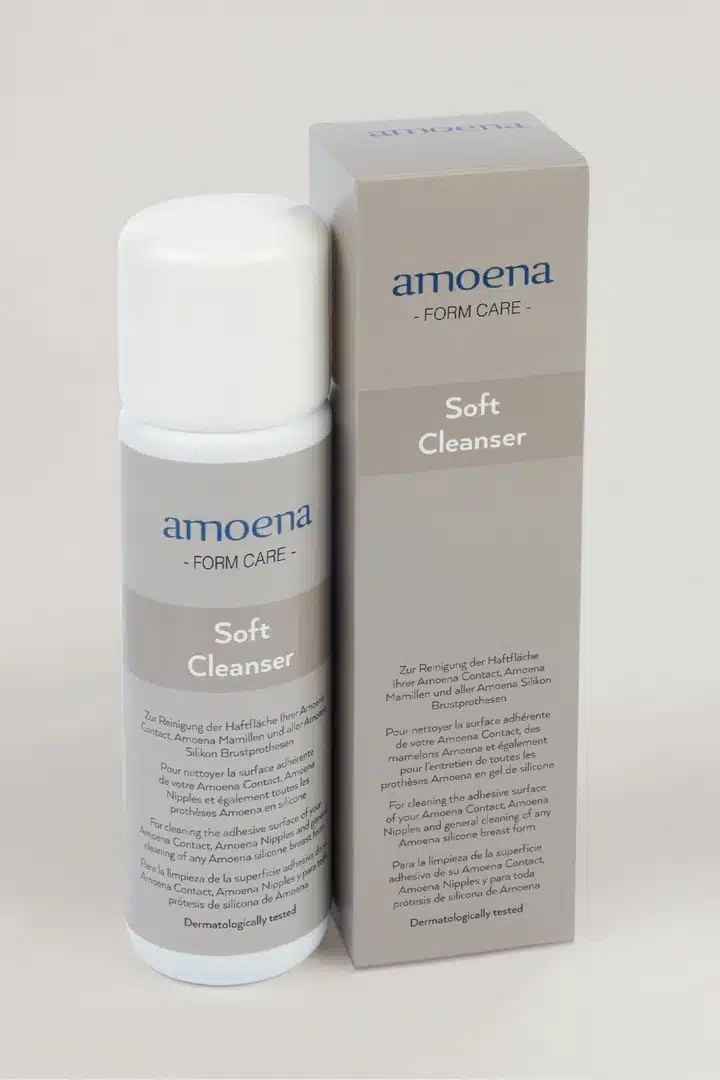 Amoena Soft Cleanser is specifically formulated for the Contact adhesive surface and contains no oil-based substances. It is also suitable for cleaning non-adhesive breast forms. For the best adhesion, use the Amoena Soft Cleanser with the Amoena Soft Brush.