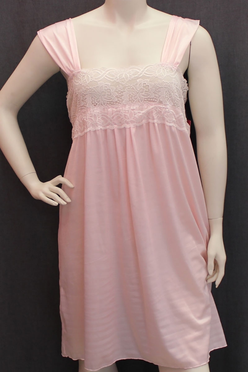 Lisa’s Lacies Christine Short Nightie. Comfortable and pretty short nightie with lace panel bust and wide straps. Cut for comfort made from tricot fabric with a gorgeous lace trim.