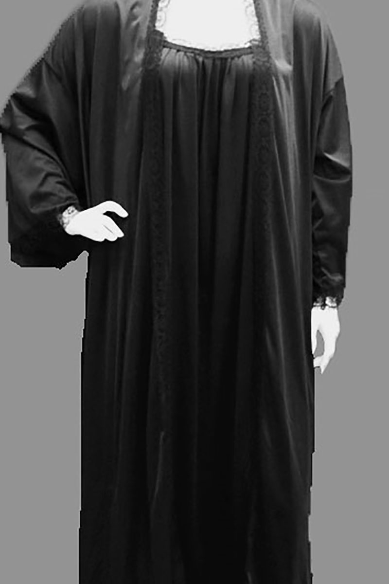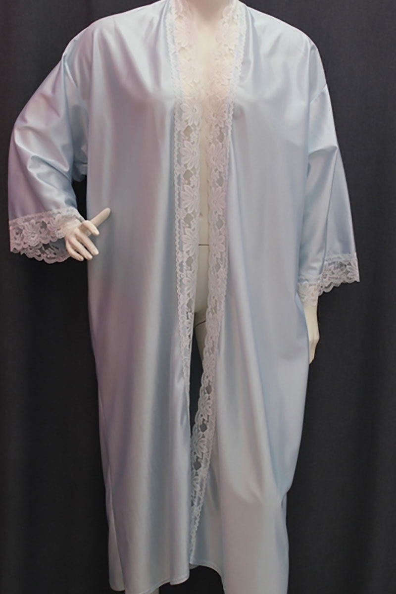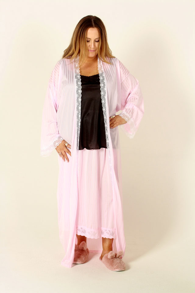 Lisa’s Lacies Greta Robe, Beautiful, tricot fabric gown is generously cut for a comfortable fit and edged in delicate, matching lace. Tricot feels great and is a very sensual fabric with a slight stretch. A perfect gown to wear over your favourite Lisa’s Lacies nightie. Shown in the photo over our Sweet Dreams Nightie (not included)