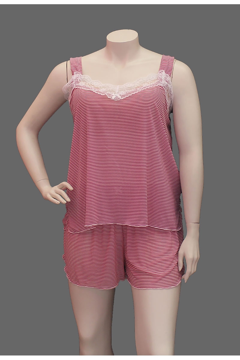 Lisa’s Lacies Rosie Stripe PJ Set. Such a cute nautical look with a feminine twist! Micro stripes of cherry red and white in a floaty fabric, with pretty white lace accent trims. Side Splits for ease of movement and elastic waistband