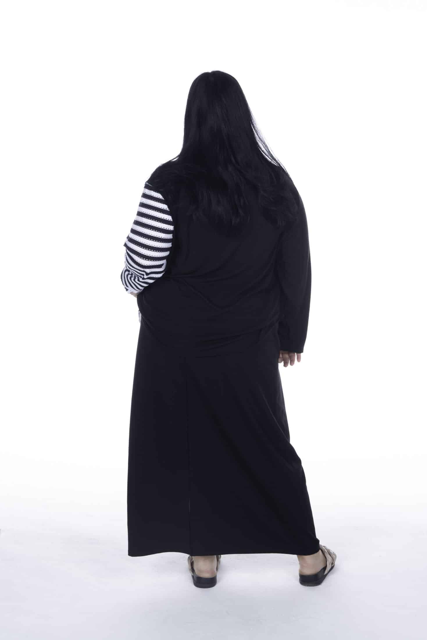 The long point is approx 80 cm long & the shorter length is 64cm, so long enough to cover what we want covered. You will love having Zoe in your wardrobe!