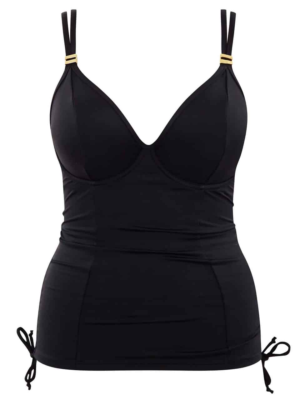 Feel classy and sophisticated in the Anya Riva Tankini. With a flattering plunging neckline and inner non padded cups, this versatile black Tankini offers great support from D to J cup. Its small details bring a luxury feel, including split straps, drawstring sides and gold finishing touches. If you want the versatility of a bikini, but the coverage of a swimsuit, a Tankini is the way forward!