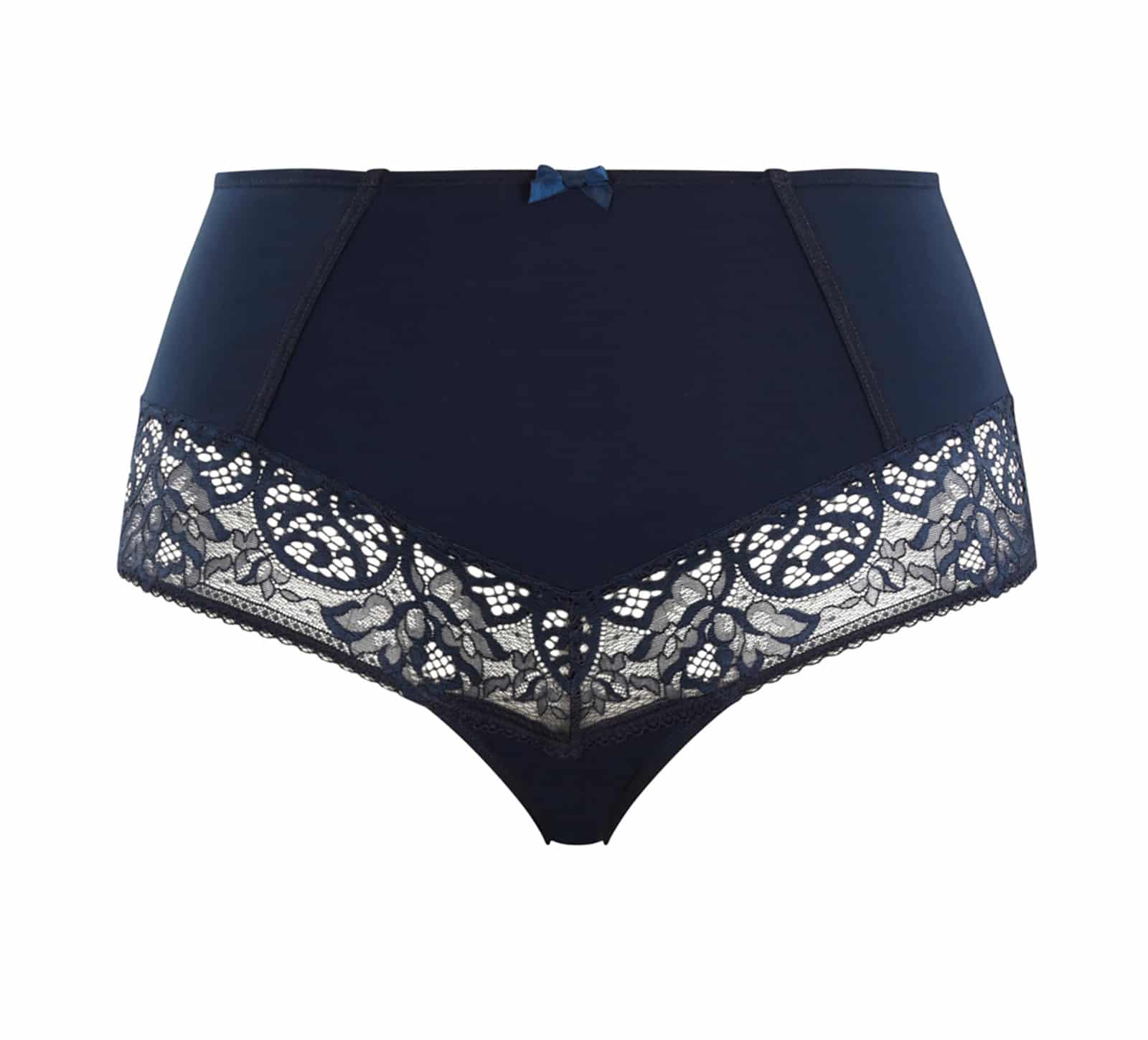 The Estel High Waist Brief by Sculptresse has slightly shaping front and back panels to give you added confidence and comfort. These flattering and soft briefs create a glamorous Navy matching set when paired with the Sculptresse Estel Full Cup Bra.